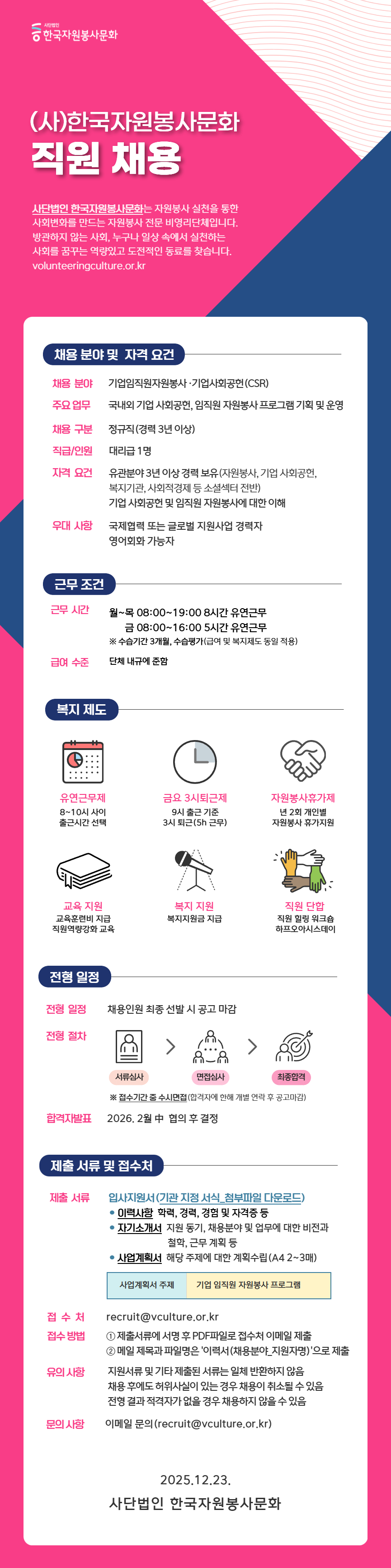 [채용] (사)한국자원봉사문화 직원 채용 안내